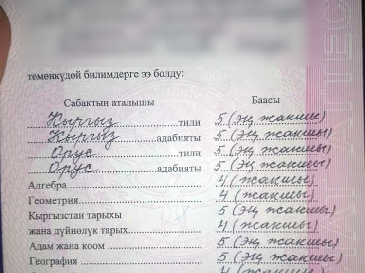 Орто мектепти бүтүргөндүгү тууралуу аттестатты катасы менен басып чыгарышкан. Бул тууралуу 24-kg.com агенттигине окурмандар билдиришти.