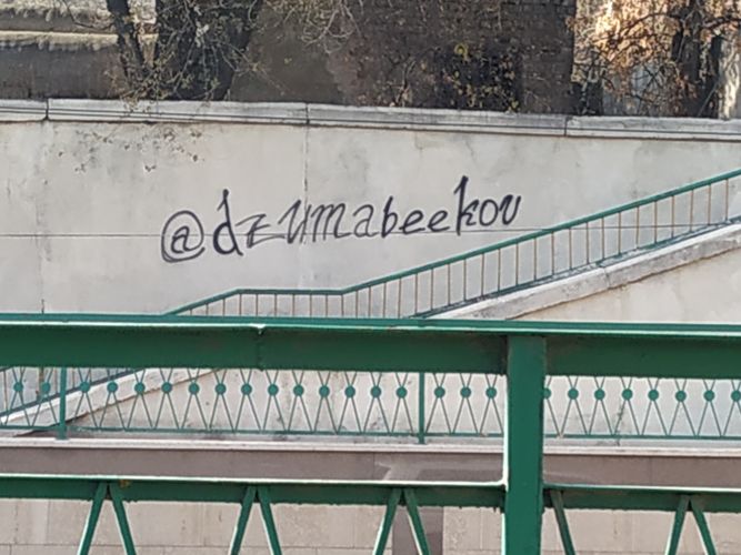 «Фейсбуктун» колдонуучусу Курбан Идыров Бишкектеги Байтик Баатыр көчөсүндөгү көпүрөгө жазылган жазууга нааразычылыгын билдирди. Ал сүрөттү баракчасына жайгаштырды.