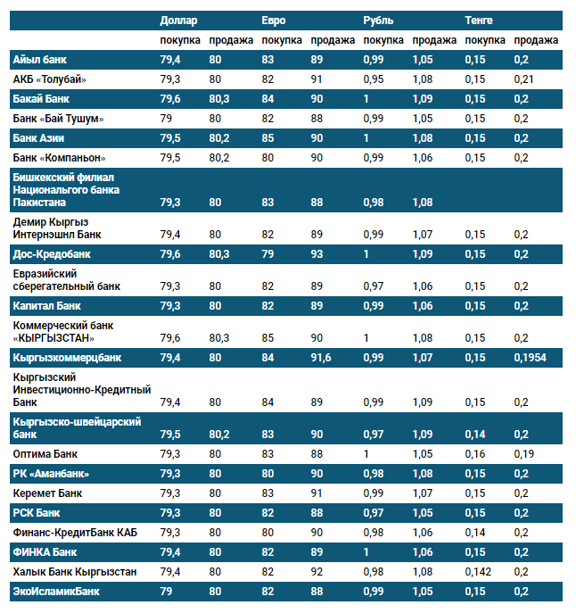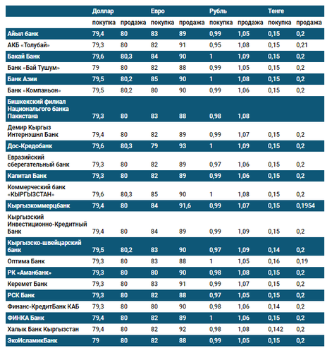 Валюталардын коммерциялык банктардагы наркы