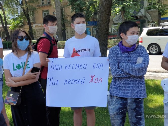 Бишкекте Жогорку Кеңештин имаратынын алдында маалыматты манипуляциялоо жөнүндөгү мыйзамга каршы митинг өтүп жатат.