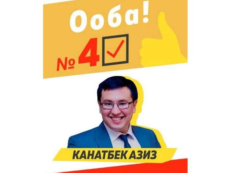 «Мекеним Кыргызстан» партиясынан депутаттыкка талапкер Канатбек Азиз 1984-жылы Жалал-Абадда туулган. Саясий жана юридикалык илимдердин доктору, профессор, «Юстициянын отличниги» наамы менен сыйланган. КРнын ИИМ Академиясын юриспруденция адистиги боюнча аяктаган. Кийинчерээк Дипломатиялык академияда билим алып, «Эл аралык мамилелер магистри» даражасын алган.