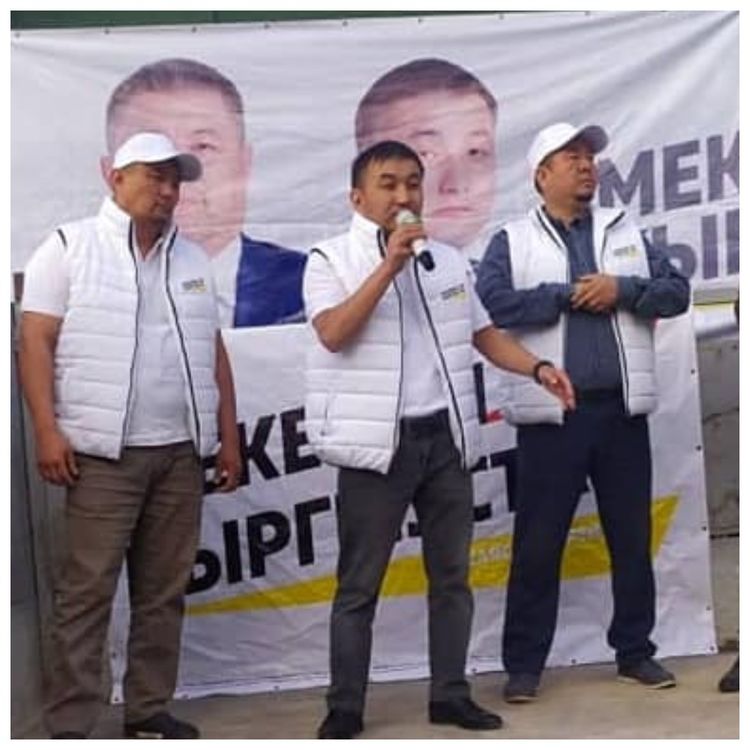 — Анын себеби бар. «Мекеним Кыргызстан» партиясы башка партиялардан өзгөчөлөнүп, карапайым элдин арасынан чыккан жигердүү жаштарга басым коюп, жаңы жүздөрдүн саясатка аралашышына мүмкүнчүлүк берип, элетти көтөрүүнү колго алды. Элет өнүксө — эл өнүгөт. Эң негизгиси «Мекеним Кыргызстан» партиясы эгемендүүлүк алгандан бери биринчи жолу Талас шаарынан 2 талапкер чыгарды. Мындай нерсе Талас шаарынын тарыхында болгон эмес. Программасы артыкчылыкка бай болгон үчүн, лидерлери жаштарга басым жасаганы үчүн парламенттик шайлоого ушул партия менен аттанууга белсендим. Элибиз саясаттан чарчап турган заманда, биздин партия ар бир жарандын социалдык абалын жакшыртуу жана экономика тармагына өнүгүшүнө салым кошот. «Мекеним Кыргызстан» партиясынын программасында саламаттыкты сактоо, билим берүү тармагы гана эмес, экономика чөйрөсүндөгү да көп новаторлук идеялар бар. Программанын чоң бир бөлүгү айыл чарбасына арналган, бул өтө маанилүү, анткени калкыбыздын басымдуу бөлүгү дал ушул чөйрөдө иштейт. Мен бул күчтүү командада экениме, партиянын мүчөсү болгонум менен сыймыктанам.