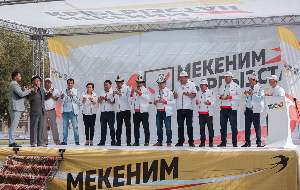 «Мекеним Кыргызстан» партиясынын үгүт кербени өлкө боюнча сапарын улантууда. Бул партиядан Жогорку Кеңештин депутаттыгы үчүн ат салышып жаткан талапкерлер жума соңунда Жалал-Абад облусунун Ноокен району менен Кочкор-Ата шаарындагы шайлоочулар менен жолугушту. Талапкерлер чогулган элге партиянын шайлоо алдындагы программасы, аймактагы социалдык маселелерди чечүү жолдору тууралуу айтып берди.