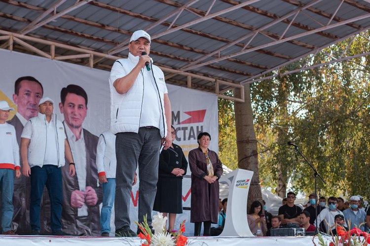Ноокат районунун көпчүлүк тургундары алдыдагы шайлоодо кайсы партияга добуш берерин жашырышкан жок. Алар «Мекеним Кыргызстан» партиясында буга чейин эл үчүн ак кызматын өтөп келе жаткан талапкерлер чогулгандыгын белигилеп, шайлоодо дал ушул саясий биримдикти колдоорун билдиришти. Жолугушууга келген миңдей шайлоочу «Мекеним Кыргызстан» партиясынын талапкерлерин ак батасын берип узатышты.