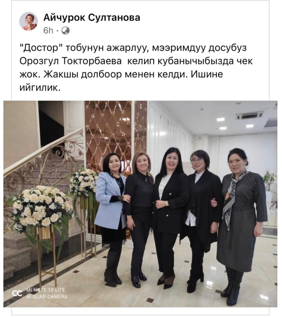 «Ажарлуу курбубуз Орозгүл Токторбаева келип, кубанычыбызда чек жок», — дейт ал.