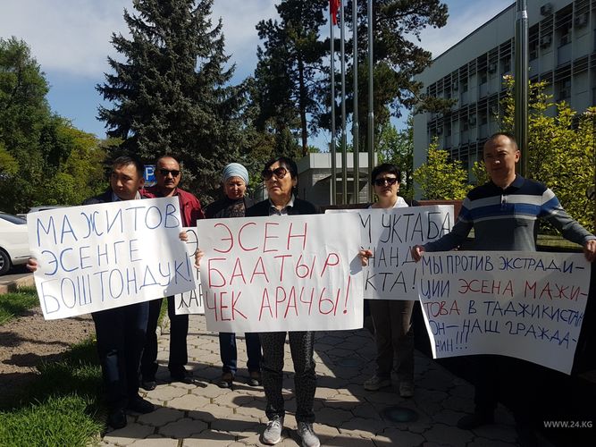 Акция катышуучулары Эсен Мажитовдун Россиядан Тажикстанга которулушуна каршы чыгышты.