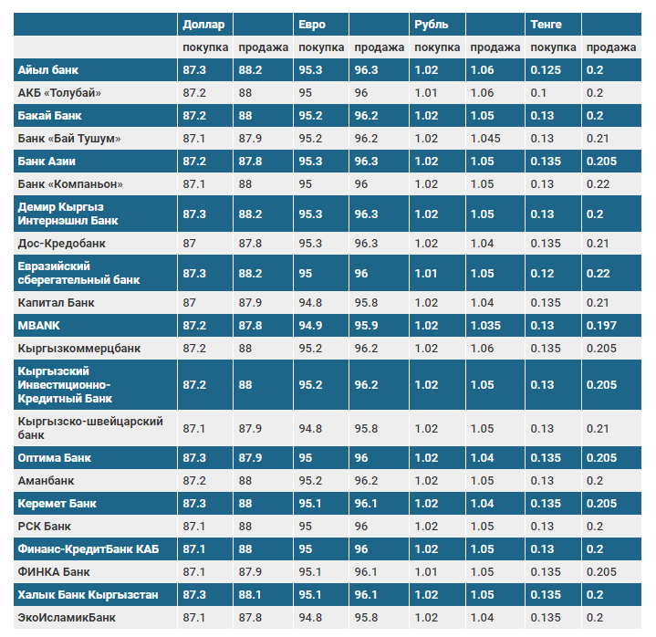 Валюталардын коммерциялык банктардагы наркы