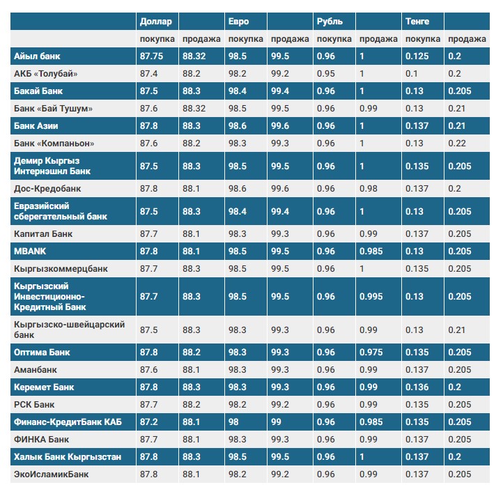 Валюталардын коммерциялык банктардагы наркы