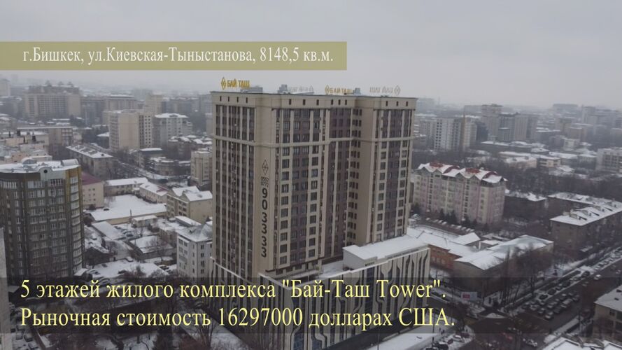 - Бишкек шаарындагы Киев-Тыныстанов көчөсүндө жайгашкан 5 кабаттуу «Бай Таш мунарасы» турак жай комплекси, жалпы аянты 8 миң 148,5 чарчы метр, алдын ала баасы 16 миллион 297 миң долларды түзөт;