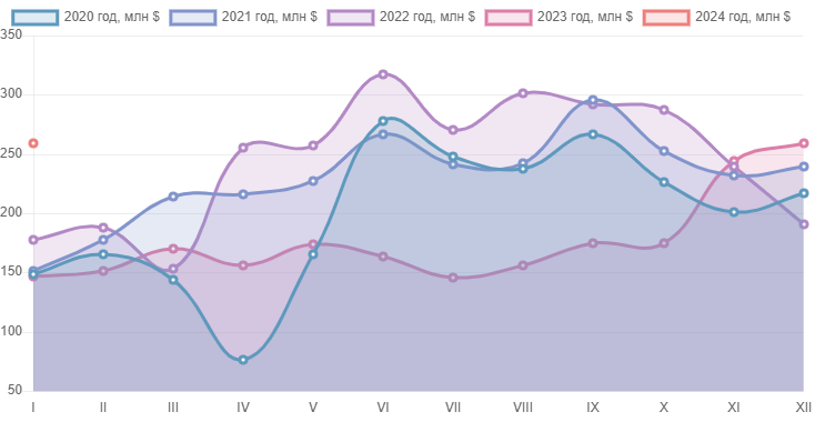 Жылдын жыйынтыгы боюнча акча каражаттарынын сыртка болгон агымы да байкалган, алардын суммасы 56,4 миллион долларды түздү. Бир ай ичинде көрсөткүч 600 миң долларга төмөндөгөн. 2023-жылдын январынан айырмаланып, 1,6 миллион долларга азайган. Акчалардын көпчүлүгү (52,8 миллион доллар) Россияга которулган.