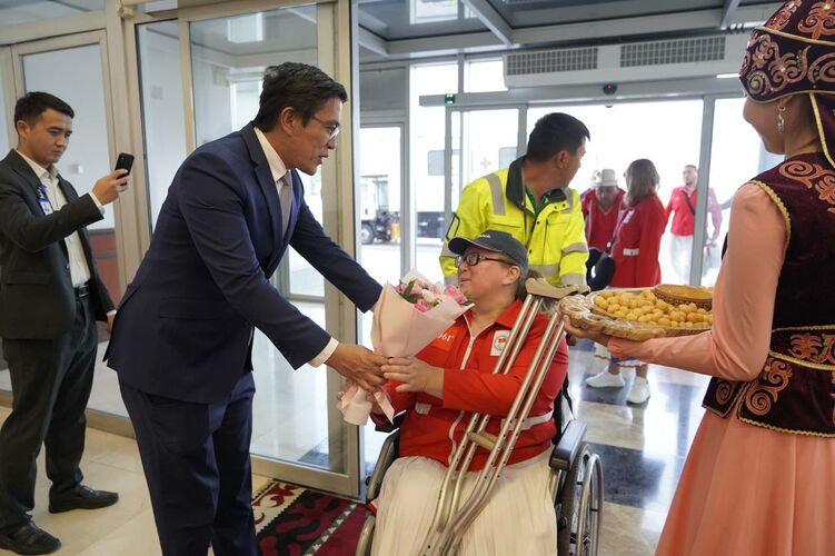 Париж шаарынан келген Кыргызстандын паралимпиада боюнча курама командасын «Манас» эл аралык аэропортунан тосуп алышты. Салтанатка министрлер кабинетинин төрагасынын орун басары Эдил Байсалов катышты.