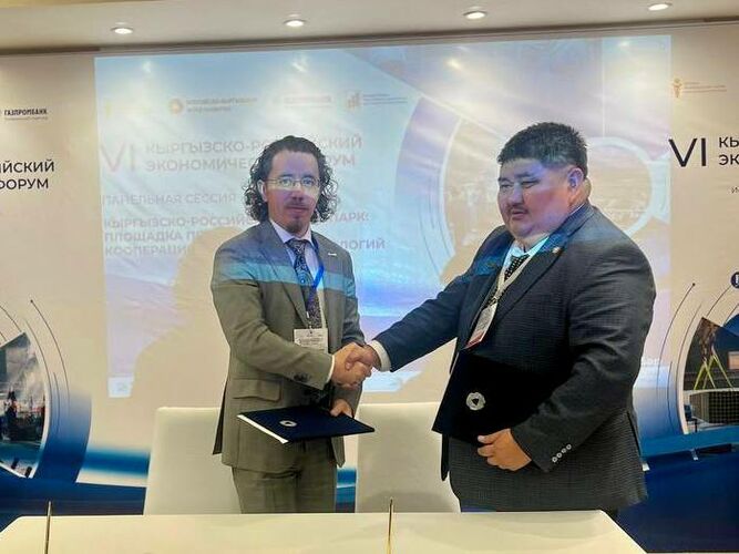 Документке Химград технополисинин башкы директору Айрат Гиззатуллин жана КР экономика жана коммерция министринин орун басары Искендер Асыкулов кол коюшту.