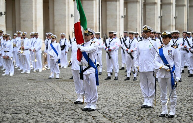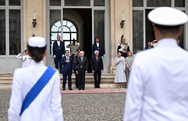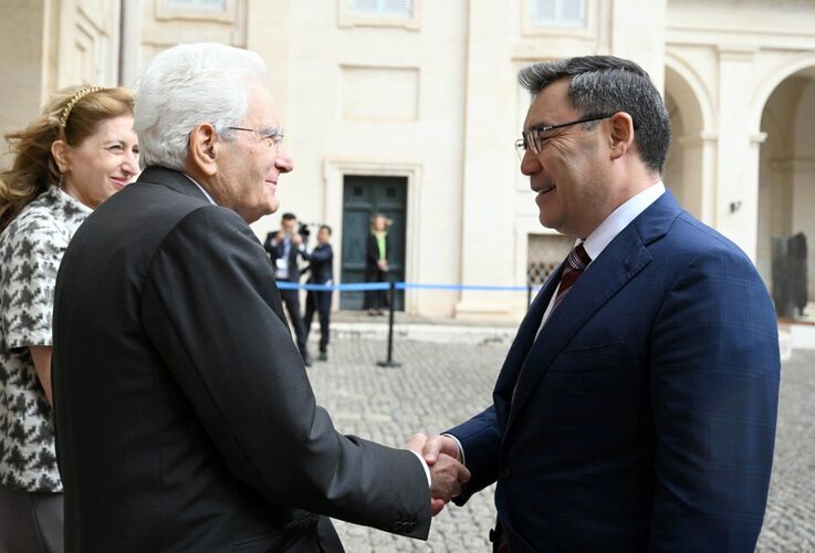 Маалыматка ылайык, Квиринале Сарайында Садыр Жапаров менен биринчи айым Айгүл Жапарованы Италиянын президенти Серджо Маттарелла жана анын кызы Лаура Маттарелла тосуп алды.