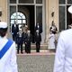 Садыр Жапаровдун келишинин урматына Кыргызстандын желеги салтанаттуу көтөрүлдү. Оркестр эки өлкөнүн мамлекеттик гимндерин аткарып, Ардак кароолдун башчысы салам рапортун берди. Андан соң Сарайда эки өлкөнүн мамлекеттик желектеринин фонунда сүрөткө түшүү аземи жана делегацияларды тааныштыруу болду.