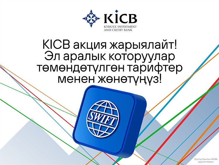 2024-жылдын 31-декабрына чейин (кошкондо) акциянын алкагында АКШ долларындагы SWIFT төлөмдөрүнө комиссия минималдуу $35, максималдуу $450 түзөт.