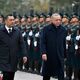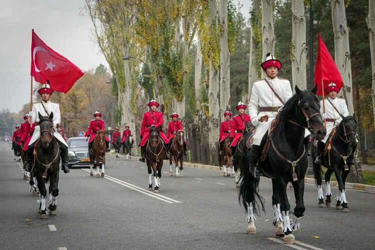 Эки өлкөнүн гимндери жаңырып, мамлекет башчылары ардактуу кароолдун алдынан өтүп, аскерлер менен учурашышты, президенттер өз делегацияларын бири-бири менен тааныштырышты.