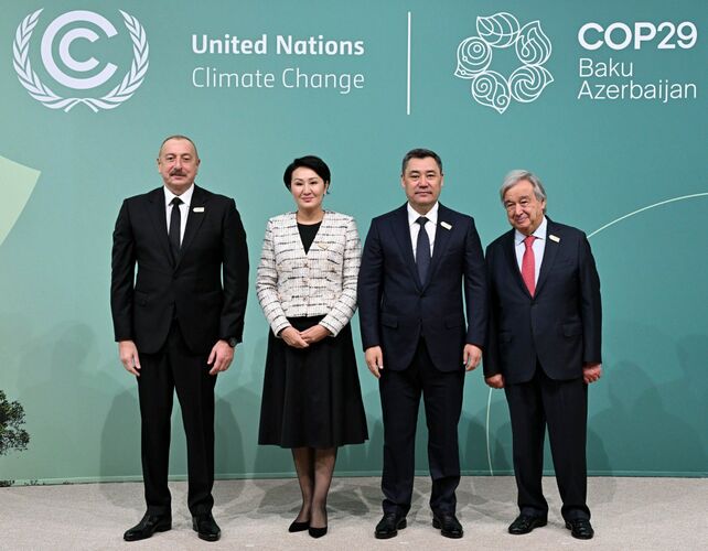 Президент Садыр Жапаров бүгүн, 12-ноябрда, Бириккен Улуттар Уюмунун Климаттын өзгөрүүсү боюнча Алкактык Конвенциясынын (БУУ КӨАК) тараптарынын 29-конференциясына катышуу үчүн Баку шаарындагы (Азербайжан Республикасы) Олимпиада стадионуна келди. Бул тууралуу президенттик аппараттын басма сөз кызматы билдирди.