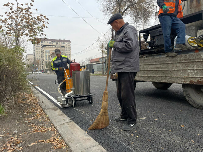 «Капиталдык оңдоп-түзөө иштеринин жүрүшүндө асфальттын эски катмары алынып (фрезерленип), бордюрлар демонтаждалып, орнотулуп, келечектеги түтүктөр үчүн корпустар орнотулду. «Бишкексууканал» ААК тарабынан эскирген келечектүү түтүктөр алмаштырылды», — деп билдирди мэриядан.