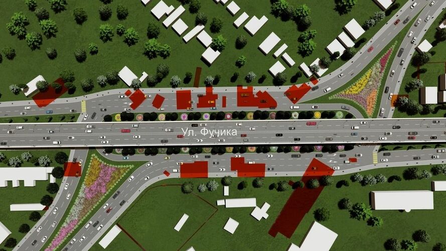 Долбоорду ишке ашыруу үчүн Жибек Жолу проспектиси менен Фучик көчөсүндөгү кесилиштер тандалды. Мындан тышкары Лев Толстой жана Фучик көчөлөрүндө; Лев Толстой көчөсү жана Жаш Гвардия бульварында да курулат.