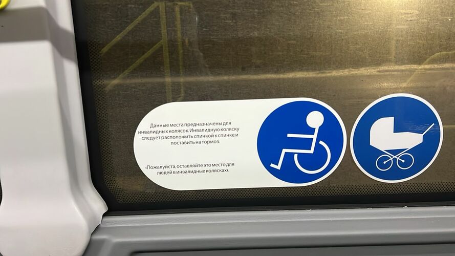 коляскалар үчүн атайын жайлар, транспортту инклюзивдик жана жеткиликтүү кылуу.
