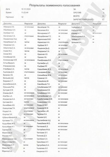 “Макул” – 44, “каршы” – 6, калыс – 33 депутат.