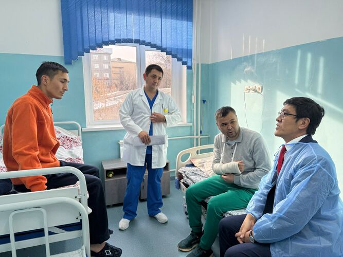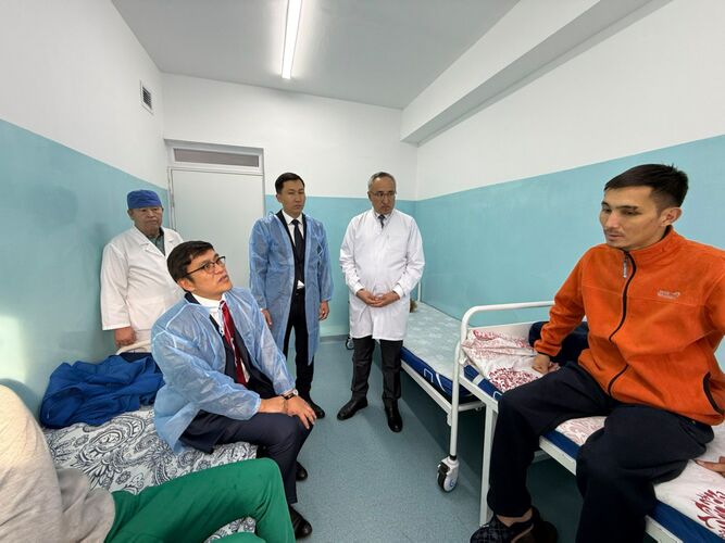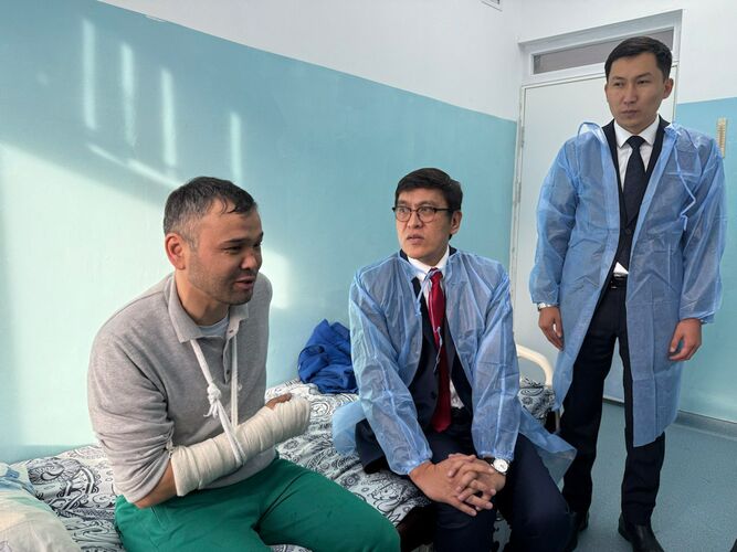 Министрлер кабинетинин төрагасынын орун басары Эдил Байсалов Актаудагы авиакырсыктан жабыркаган жарандарга Бишкектеги Улуттук госпиталга барды. Бул тууралуу министрлер кабинетинин басма сөз кызматы билдирди.