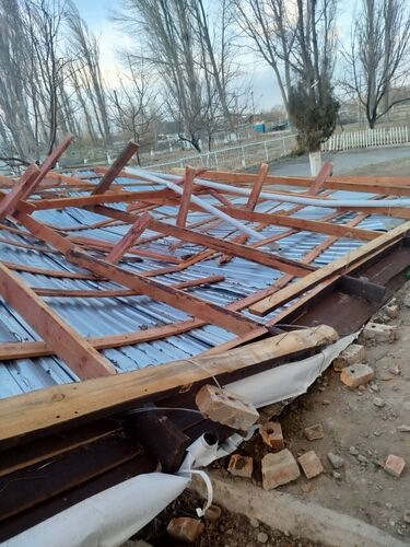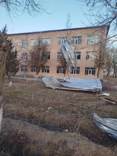 Маалыматка караганда, Айтматов районуна караштуу Жон-Дөбө айылында бүгүн, 22-январда ылдамдыгы секундасына 25-30 метрге жеткен катуу шамал катталып, Р.Осмонов атындагы орто мектебинин чатырын учуруп кеткен.