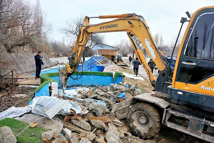 Муниципалдык менчик башкармалыгы тарабынан мыйзамсыз объектилерди, анын ичинде суу коргоо зонасында жайгашкан эс алуучу жайларды демонтаждоо иштери жүрүп жатканы көрсөтүлгөн.