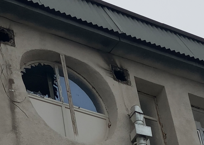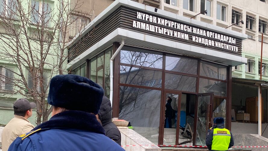 Медициналык мекеменин эшик-терезелери сынып, дубалдары көө менен капталган. Учурда имарат курчоого алынып, окуя болгон жерде милиция жана өзгөчө кырдаалдар кызматынын кызматкерлери иштеп жатат.