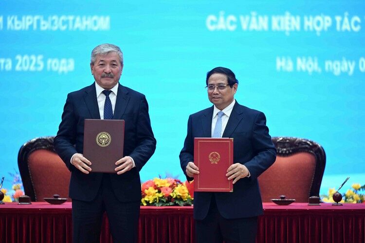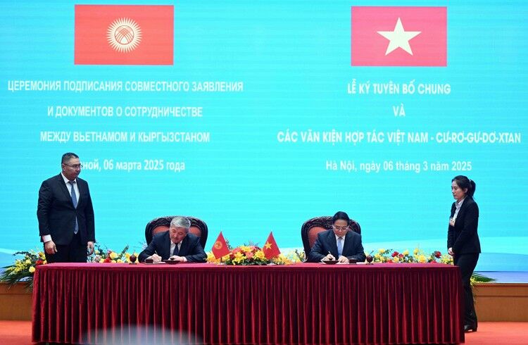 Министрлер кабинетинин төрагасы Адылбек Касымалиев жана Вьетнамдын премьер-министри Фам Минь Тинь, Кыргызстандын министрлер кабинетинин төрагасынын расмий сапарынын жыйынтыгы боюнча Биргелешкен билдирүүгө кол коюшту.