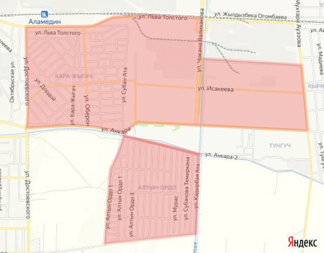 Өчүрүү аймагы Достоевский, Анкара, Ауэзов көчөлөрү жана темир жол линиясы менен чектелет.