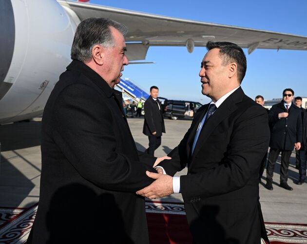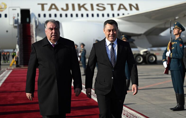 «Манас» эл аралык аэропортунда Тажикстандын Президентин Кыргыз Республикасынын Президенти Садыр Жапаров тосуп алды.