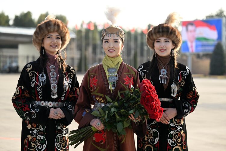 Флагштокторго эки өлкөнүн желектери илинди, килем төшөлдү, улуттук боз үй түрүндө инсталляция орнотулду, ардак кароол тизилди. Улуттук кийимчен кыздар Эмомали Рахмон менен учурашып, ага гүл сунушту.