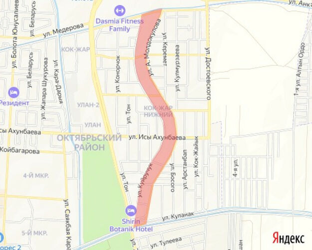 Мындан тышкары Түштүк БЧК — Куйручук көчөсү — Чыгыш БЧК — Молдокулов көчөсү менен чектелген тилкеде суу болбойт.
