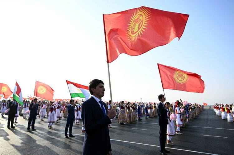 Худжанд шаарынын Эл аралык аэропортунда Кыргызстандын, Тажикстандын жана Өзбекстандын мамлекеттик желектери илинди, килем төшөлдү, ардак кароол тизилди.