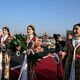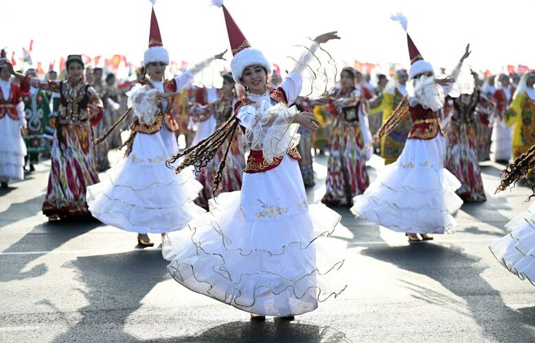 Улуттук кийимчен кыздар Кыргызстандын Президентин тосуп турушту. Андан кийин мамлекет башчылары үчүн кыскача концерттик программа тартууланды.