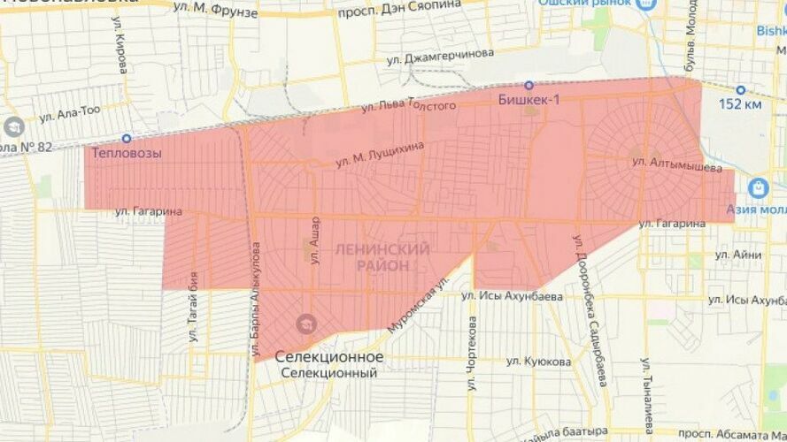 Өчүрүү аймагы: Лев Толстой, Бакаев, Алтымышев, Жунусалиев, Гагарин, Боронбай, Көпүрө-Базар, Ахунбаев, Чортеков, Муромская, Циалковский, Тимур Фрунзе, Өмүр, Алыкулов, Ахунбаев, Көк-Жайык, Гагарин, Торугарт көчөлөрү, ошондой эле Агрардык айылдар -Өргө«, «Ак-Ордо» (Ахунбаев көчөсүнүн түндүк тарабы), «Теңир-Тоо» (Ахунбаев көчөсүнүн ылдыйы).