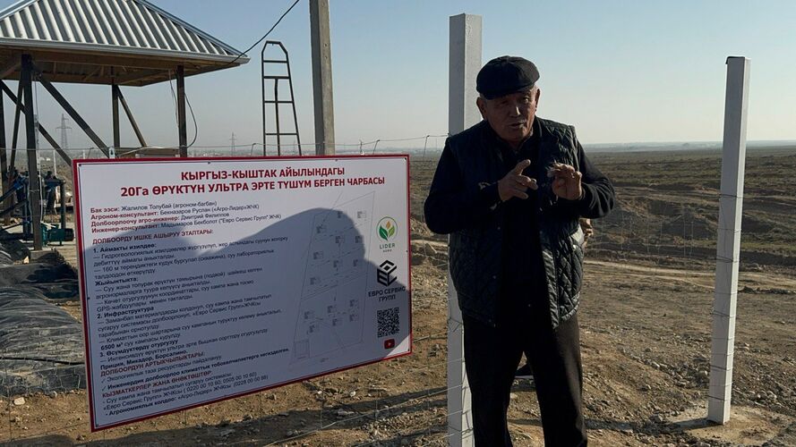 Мында өрүктүн ультра эрте сорттору отургузулуп, сугаруу үчүн заманбап материалдарды колдонуу менен тамчылатып сугаруу системасы ишке киргизилген. Ага катар климаттын оор шарттарына карата суунун туруктуу көлөмү аныкталып, 6500 м³ суу сактагыч курулган.
