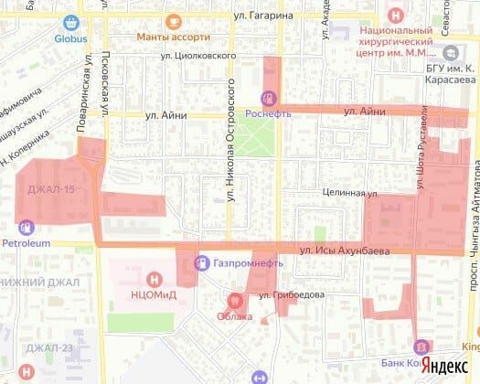 Өчүрүү аймагы көчөлөр менен чектелет: