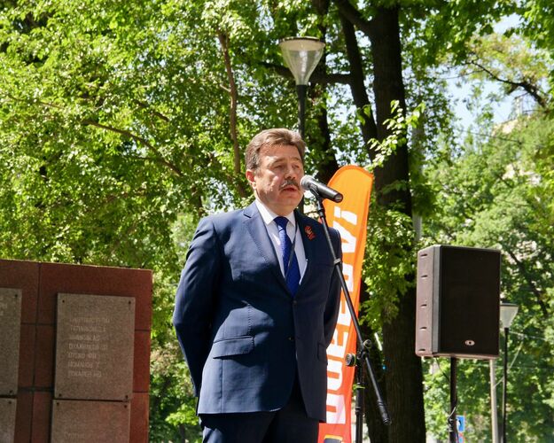 Россиянын Кыргызстандагы толук жана ыйгарым укуктуу элчиси Сергей Вакунов «Эстелик оту» салтанаттуу тапшыруу аземине катышты. Бул тууралуу дипломатиялык өкүлчүлүктүн Telegram-каналында кабарланды.