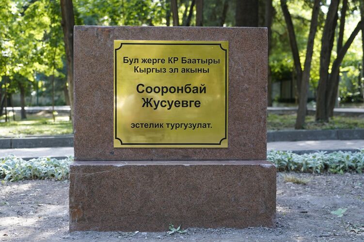 Бүгүн, 12-майда Кыргыз Республикасынын Баатыры, Кыргыз Республикасынын эл акыны, ІІІ даражадагы «Манас» орденинин ээси, Токтогул атындагы Мамлекеттик сыйлыктын лауреаты, Улуу Ата Мекендик согуштун катышуучусу Сооронбай Жусуевдин туулган күнүнүн 100 жылдык мааракесинин алкагында Бишкек шаарындагы Тоголок Молдо атындагы сейил бакта акындын эстелик ташы орнотулду.