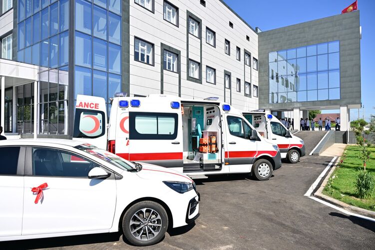 Соңунда Садыр Жапаров ооруканага эки тез жардам унаасын тапшырды.