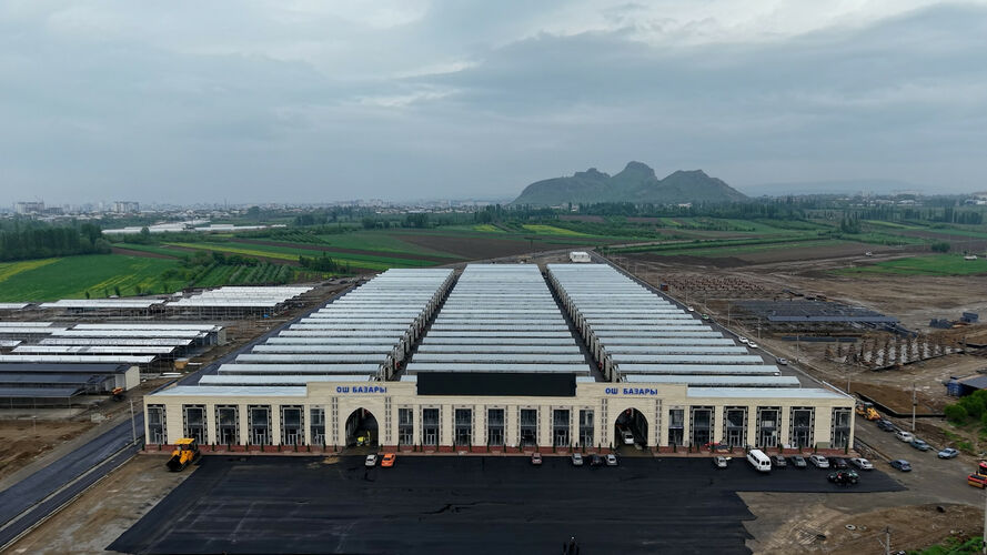Андан соң, МинКаб Төрагасы курулуп жаткан Ош шаарынын борбордук базары — индустриялык-логистикалык соода борборуна барды. Жалпы 6,7 гектар жерге курулуп жаткан бул борбордук базарда 2400 орундуу соода жайы болот. Жалпы суммасы 550 млн сомго курулган бул базар быйыл ишке берилет.