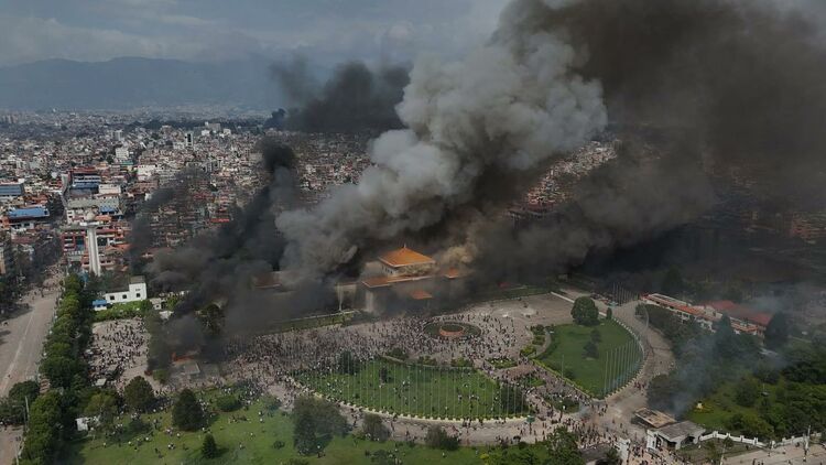 Фото Социалдык тармактардан алынды. Непалда өкмөттүк имарат өрттөнүп жатат