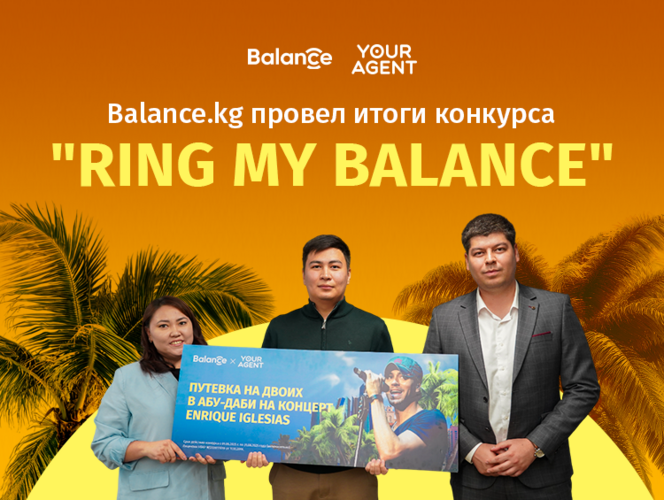 Balance.kg Your Agent туристтик агенттиги менен биргеликте 18-сентябрда «Ring my Balance» конкурсунун жыйынтыгын чыгарды. Конкурс үч этап менен өтүп, катышуучуларга Balance.kg колдонмосу аркылуу 100 сомдон жогору суммадагы сатып алууларды төлөө менен сонун байгелерди утуп алууга мүмкүнчүлүк берди.