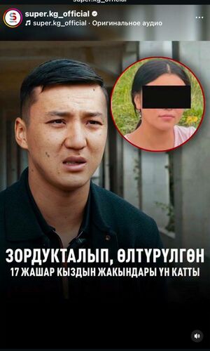 Маалыматка ылайык, ал 2002-жылы туулган Нарынбек уулу Сыймык аттуу жаран болуп чыкты. Бул жаран маркумдун тууганы эмес. Буга чейин ал уурулук жана алдамчылык жасоого шектелип, жоопкерчиликке тартылган. Чындыкка дал келбеген маалыматтарды таратуу менен ал коомчулукту адаштырган жана жабырлануучунун үй-бүлөсүнө жана жагдайларына эч кандай тиешеси жок.