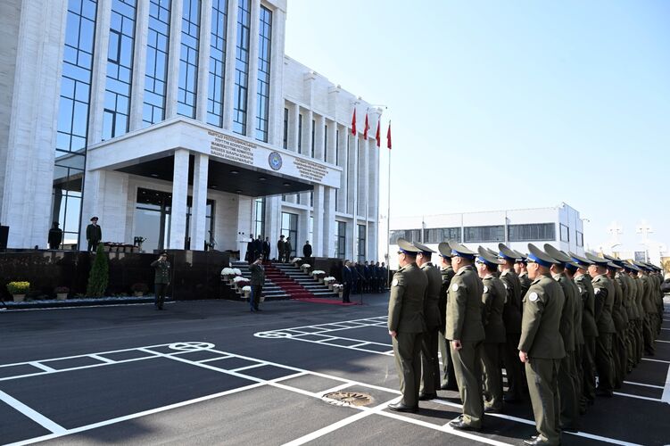 Мамлекет башчысы офицерлерге, ардактуу конокторго кайрылып, бүгүнкү күндө өлкө турмушунун бардык чөйрөсүнө, анын ичинде артыкчылык берилген багытыбыз — улуттук коопсуздук маселелерине өзгөчө көңүл бурулуп келатканына жалпыбыз күбө болуп жатканыбызды белгиледи.