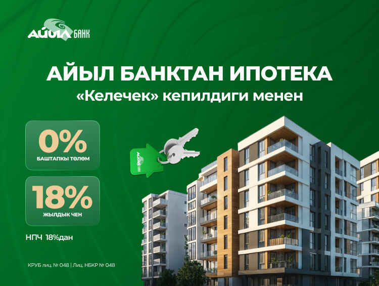«Айыл Банк» кардарларына жаңы мүмкүнчүлүк сунуштайт: «Кепилдик Фонд» ААКсынын «Келечек» кепилдиги менен баштапкы төлөмсүз батир алууга болот. Бул өзгөчө чечим кыргызстандыктарга көптөн күткөн өз үйүнө ээ болууга жардам берет.
