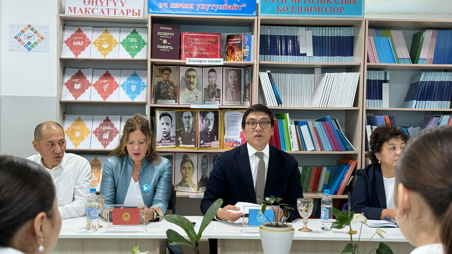 Бишкек шаарындагы Байдылда Сарногоев атындагы № 100 орто мектебинде министрлер кабинетинин төрагасынын орун басары Эдил Байсаловдун жана БУУнун Кыргызстандагы туруктуу координатору Антье Гравенин катышуусунда класстык саат болуп өттү.