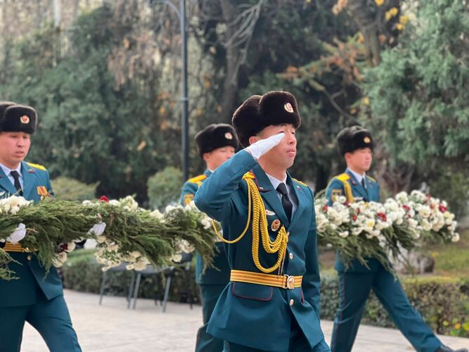 Салтанат Түбөлүк от мемориалдык комплексинде өттү. Ага мэрдин орун басарлары, муниципалдык кызматкерлер, шаардык кеңештин мүчөлөрү, шаардык кызматтардын жана ишканалардын жетекчилери, Ош гарнизонунун аскер кызматкерлери жана шаар тургундары катышты.